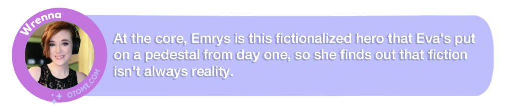 Eva hasn’t known Emrys quite as long, so while their bond really grows strong over this story, there are still a lot of unspoken things between them.