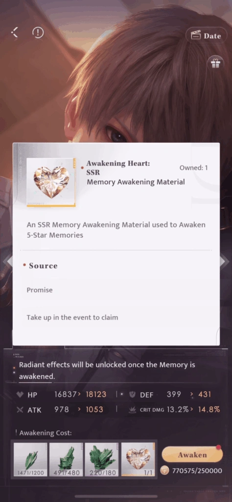 Awakening Hearts are pretty hard to come by, but they’re essential once you’ve maxed out a Memory at level 80 and want to push it even further. There are two kinds, depending on whether your Memory is SR or SSR—so you’ll need the right one for the job.