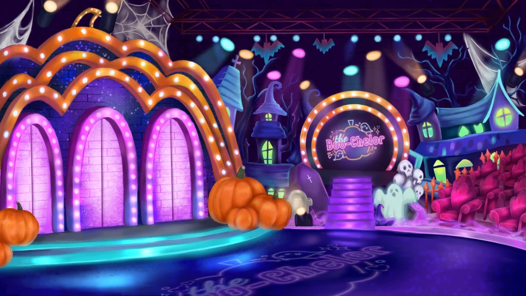 I wanted the whole game to feel fun, very Halloween-y, and just… loud. Not in an overwhelming way but in the way that a dating show is loud.