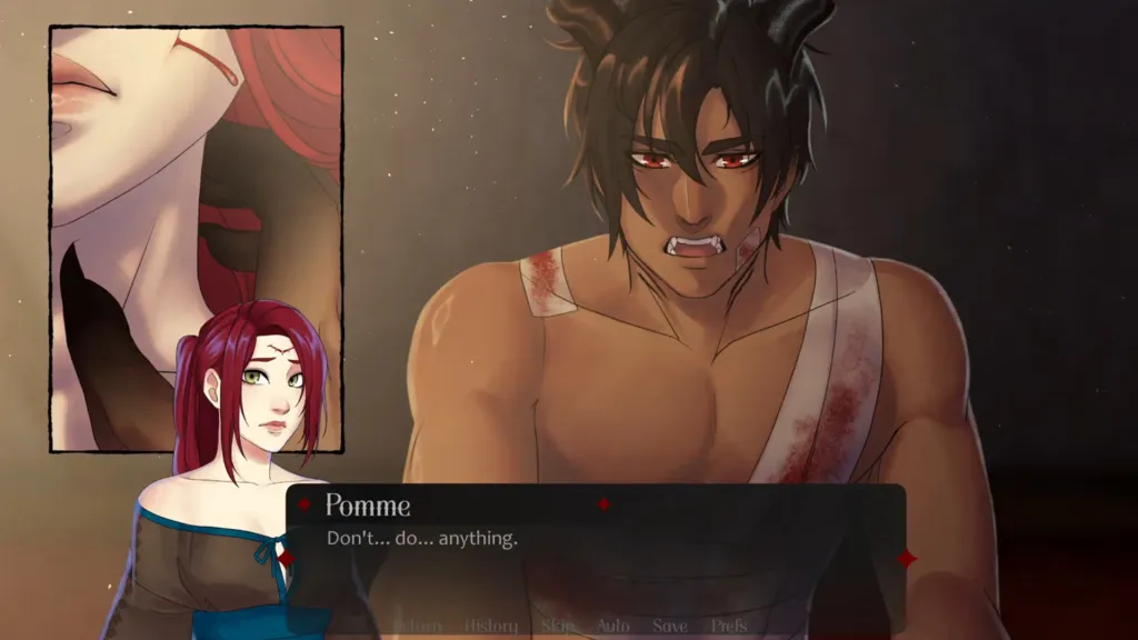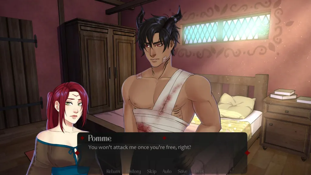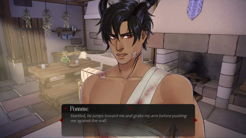 “Yes. Yeah, so that’s the following chapter of the demo, so quite at the beginning. That’s when the both characters get to know more of each other and see Styx shirtless. But that’s more to be sure that his wounds are healing well. I’m sure it’s nothing else.”
