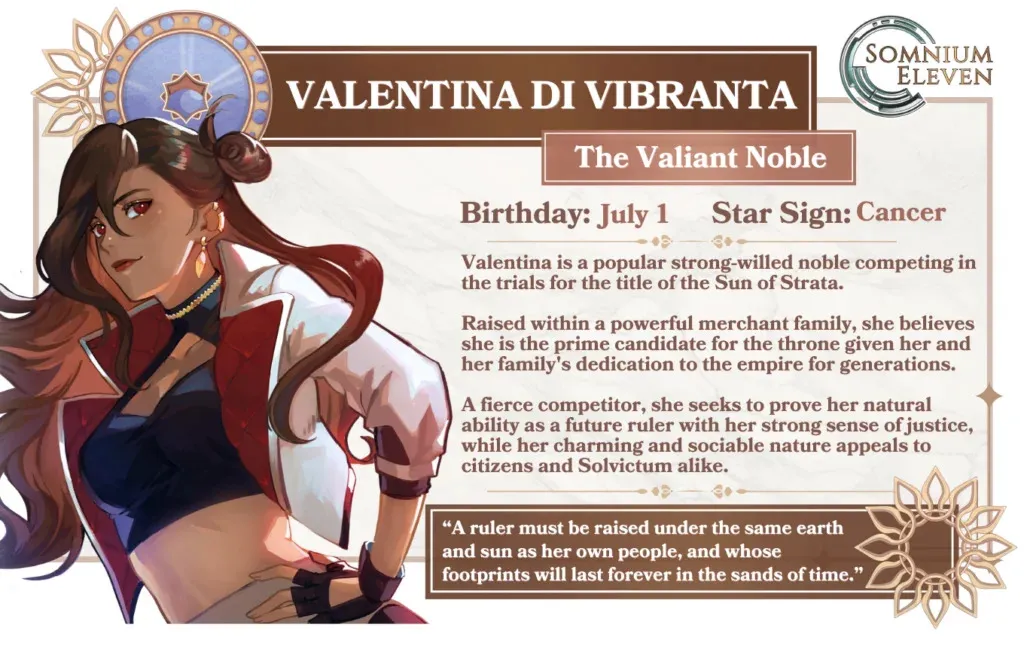 Alexandra: Absolutely. Somnium 11 follows Aria, who wakes up to find herself in what seems to be a competition. The trials are set to determine the next ruler of Strata because Prince Soren is stepping down due to serious circumstances. Not only does she have to navigate these trials, but she also has to explore Strata, interact with other competitors—the “soul victims”—and discover her own purpose in this mysterious world. Along the way, there’s plenty of opportunity for romance and self-discovery.